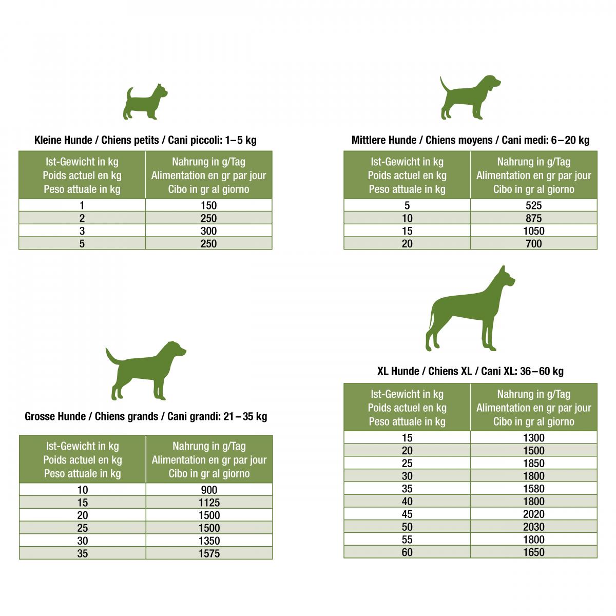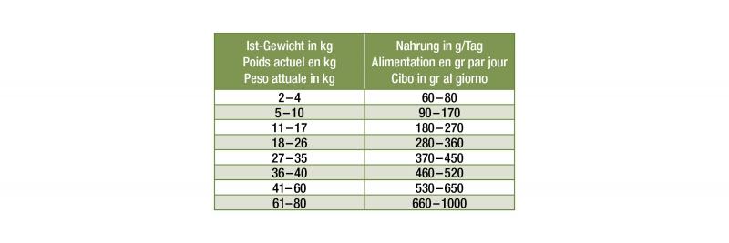 • Le tabelle di alimentazione sono solo delle linee guida. Con i cuccioli, controllare regolarmente il peso e regolare la quantità di cibo.